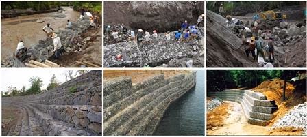 F. APLIKASI KAWAT BRONJONGPenggunaan kawat bronjong pada proyek konstruksi biasa diaplikasikan untuk memeperkuat tanah yang longsor, stabilitas leresm perlindungan terhadap gerusan, dll.
